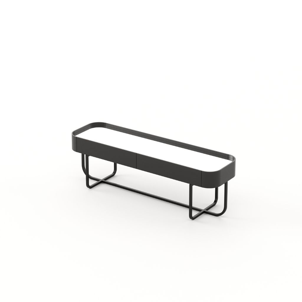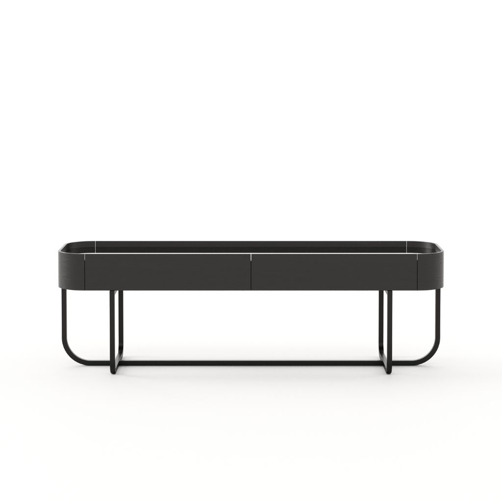 Designed to welcome with distinction, the clean lines and rounded corners were intentional choices that allowed the creation of a harmonious silhouette, ideal for environments that favor minimalist elegance. A refined choice for those looking for an entryway console that balances form and utility.