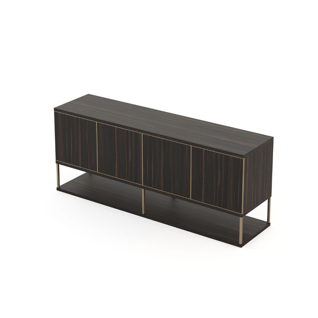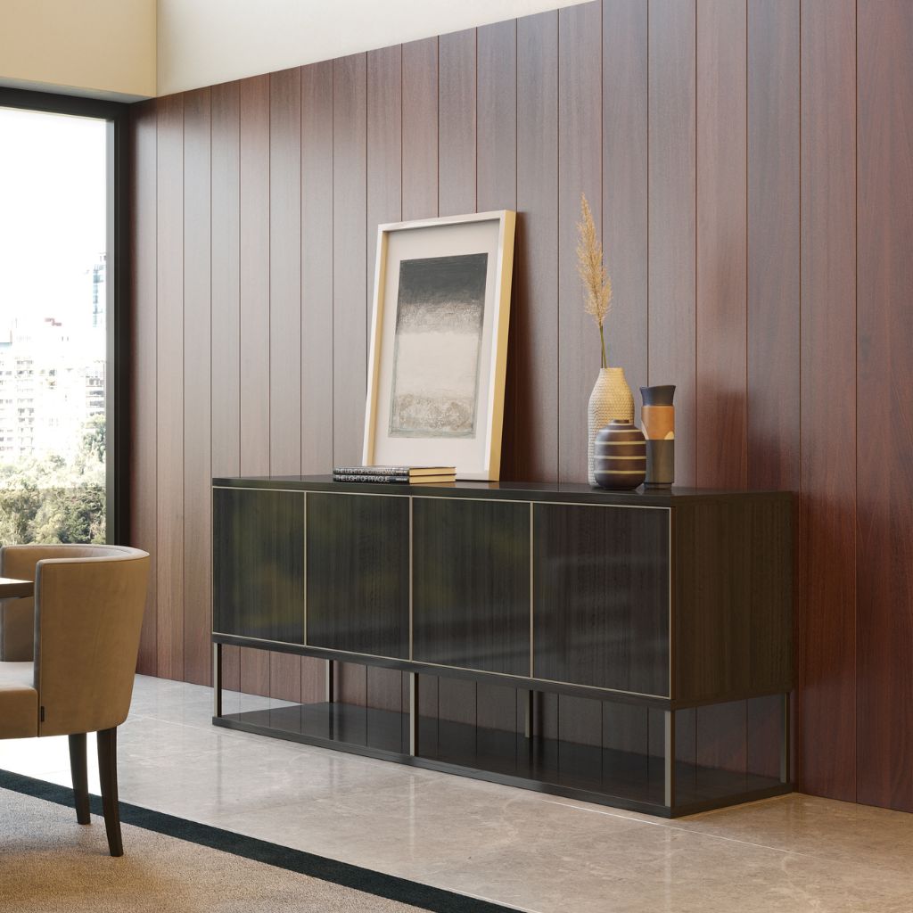 Classically inspired in a modern style, the Manhattan sideboard offers a sober and exclusive touch to your living room. Eucalyptus mate finishes and stainless steel mate details make this piece timeless. With four tic-tac doors, this is a robust yet practical and functional piece of furniture.
