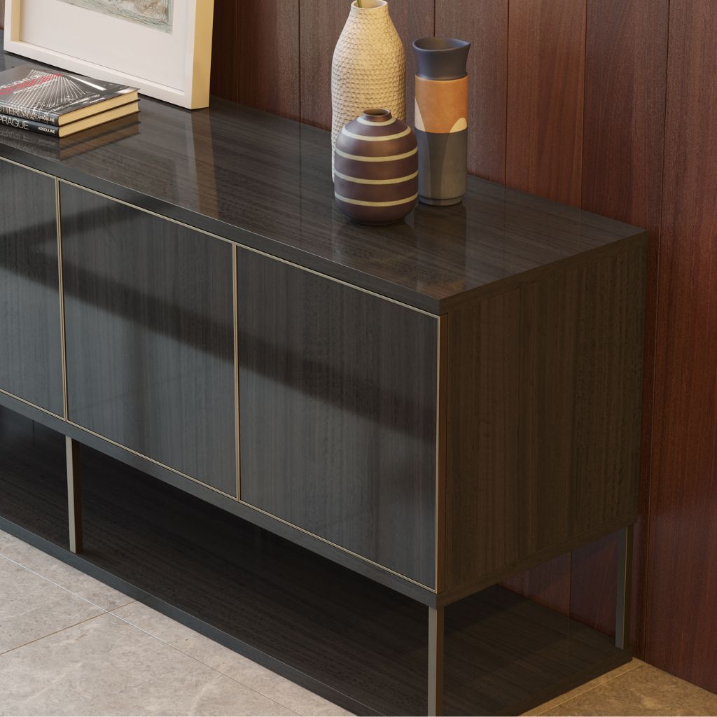 Manhattan Sideboard with four doors in eucalyptus mate and stainless steel mate.