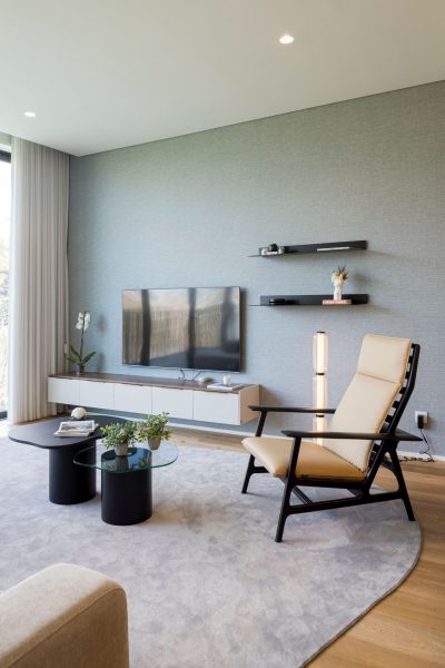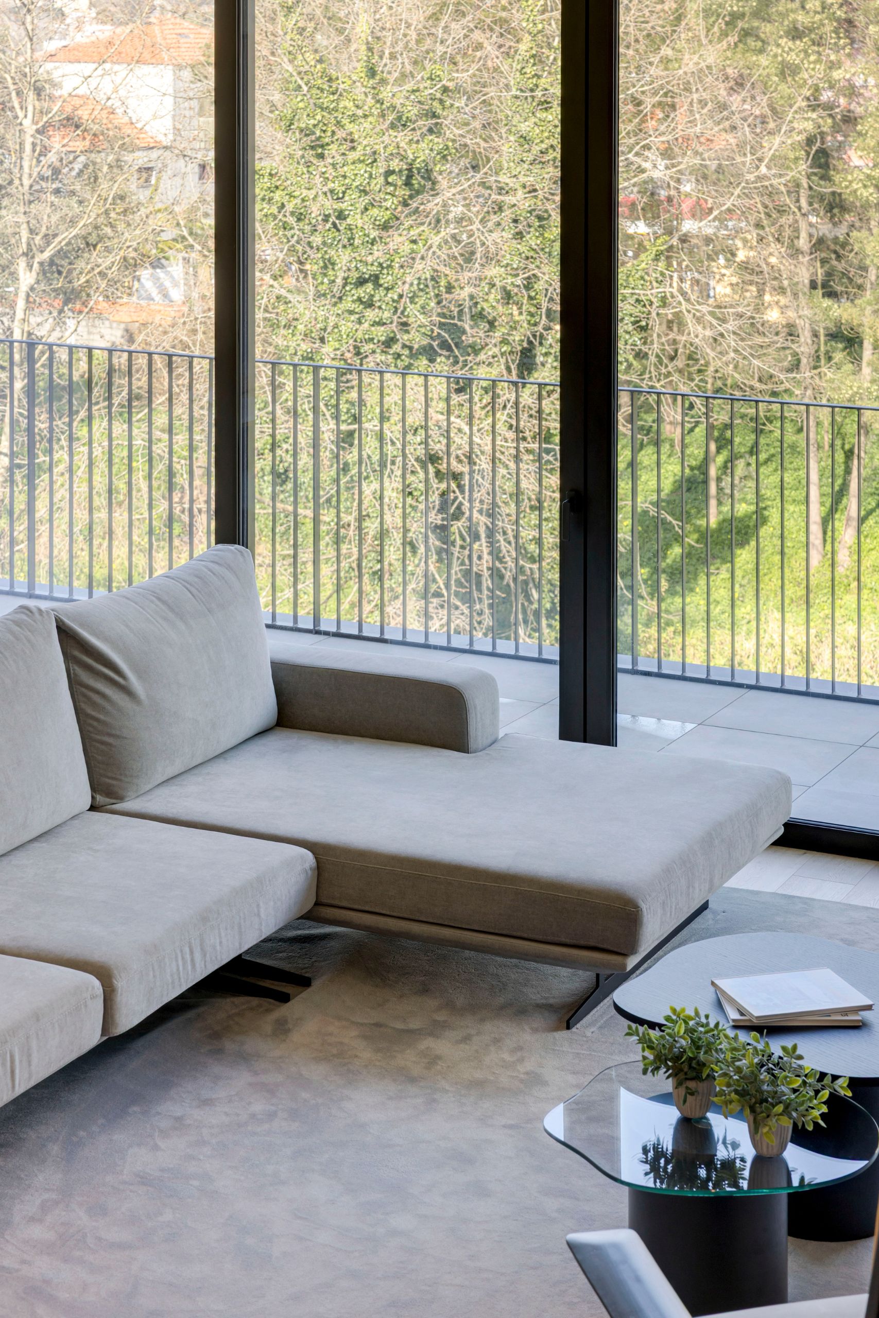 In the private areas, the concept evolves into a more intimate and serene atmosphere. With a breathtaking landscape, the suite is bathed in natural light that softens textures and highlights the carefully curated palette.