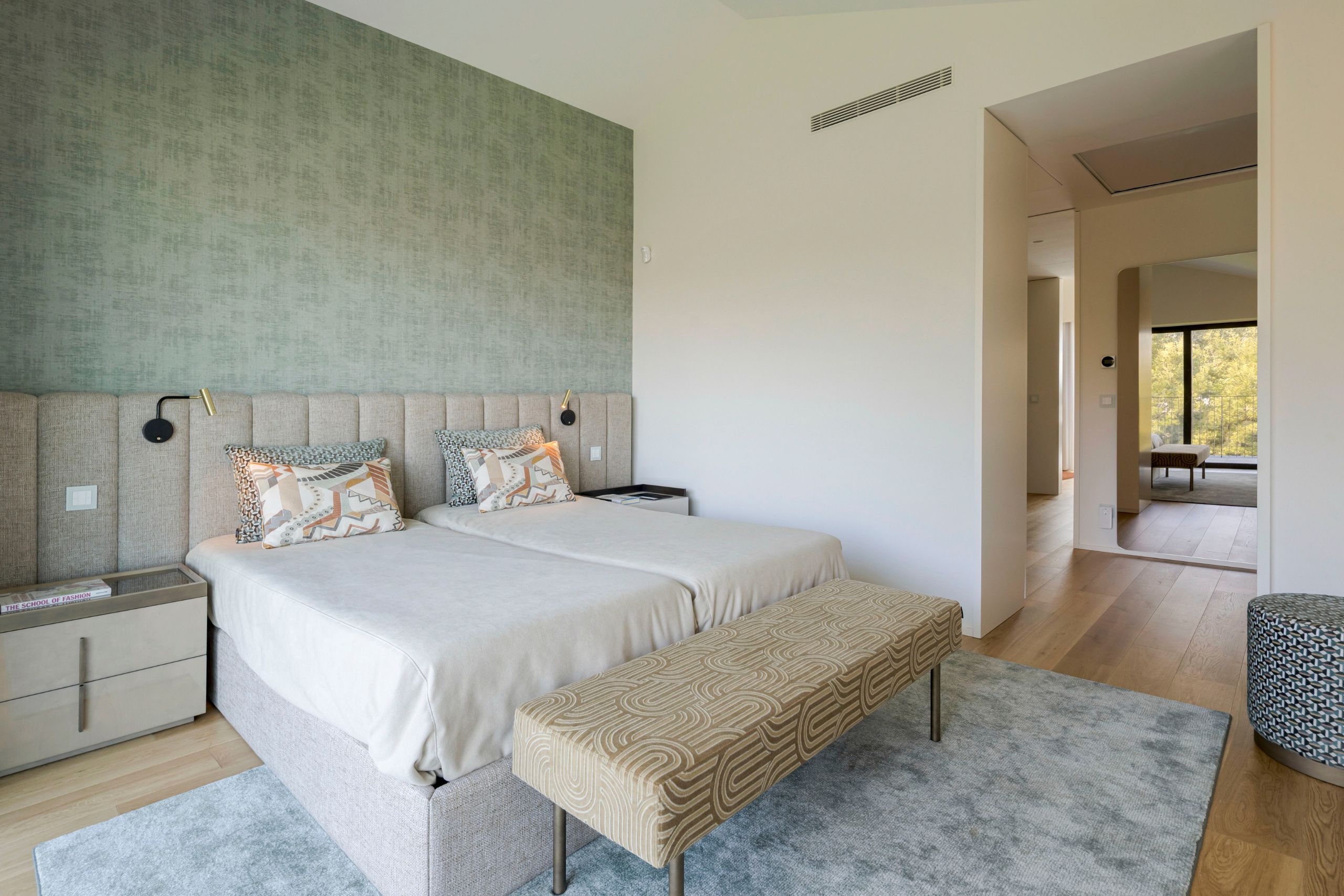 The guest bedroom was designed to welcome with discretion, conveying tranquility through a neutral and elegant language. Its direct connection to the pool area enhances the sense of retreat, creating a bright and naturally inviting environment.