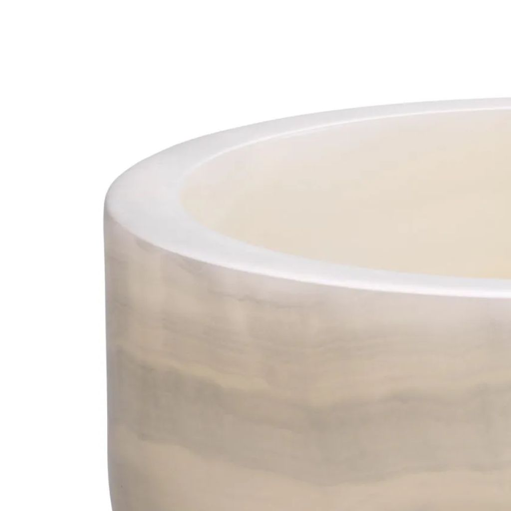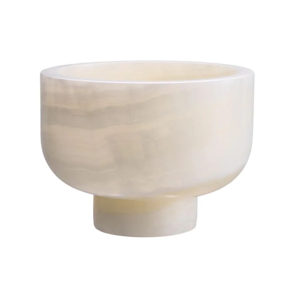 Esculpida à mão em ónix natural, esta taça decorativa distingue-se pelas variações únicas de cor e pelos veios orgânicos que percorrem a superfície, tornando cada peça singular. O acabamento cuidado realça a profundidade do material, enquanto a base sólida reforça a sua estabilidade e carácter escultórico, ideal para valorizar qualquer composição decorativa com autenticidade.